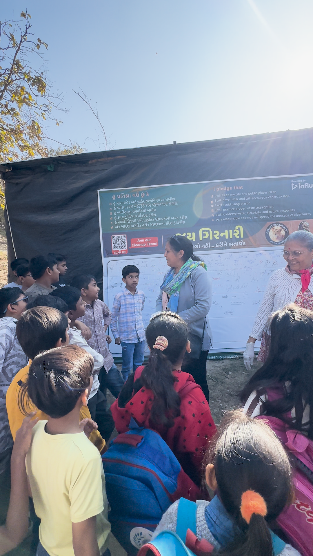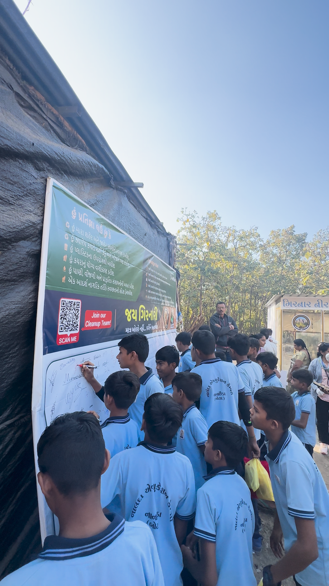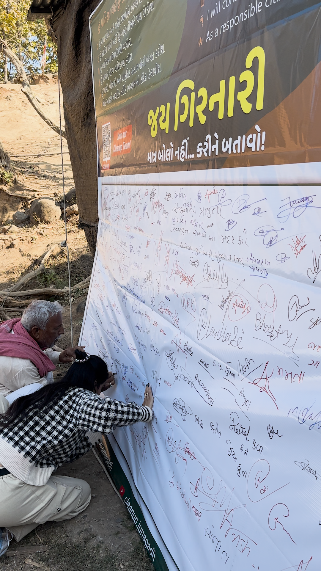 About: As part of our awareness initiative, we installed a large sign board on the Girnar steps, encouraging people to take a pledge to protect nature.